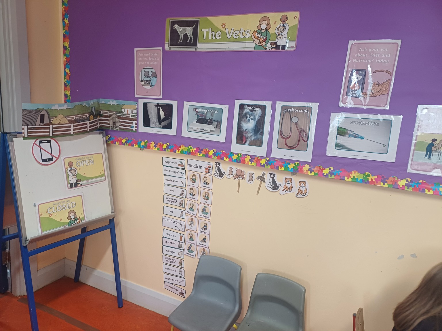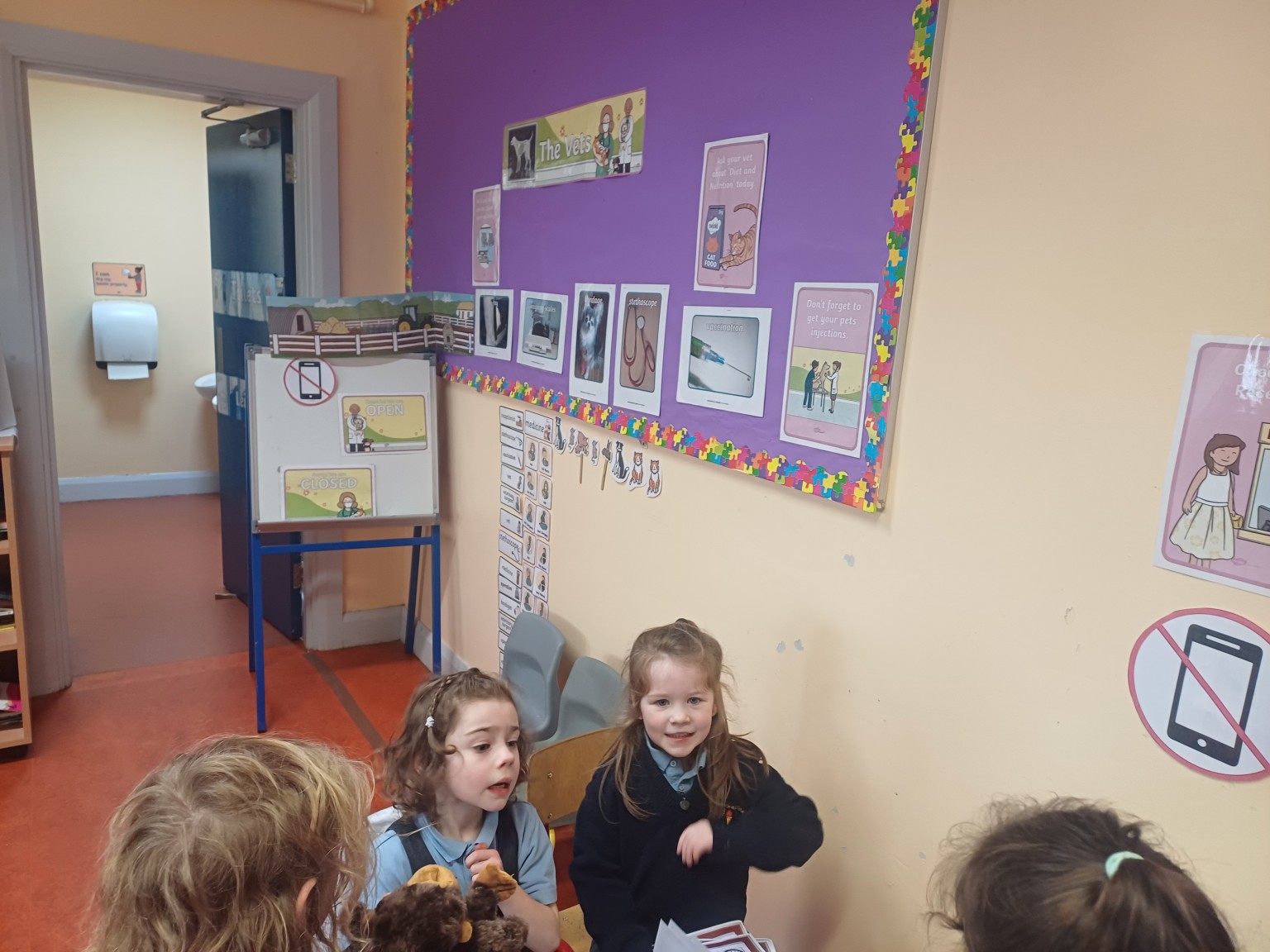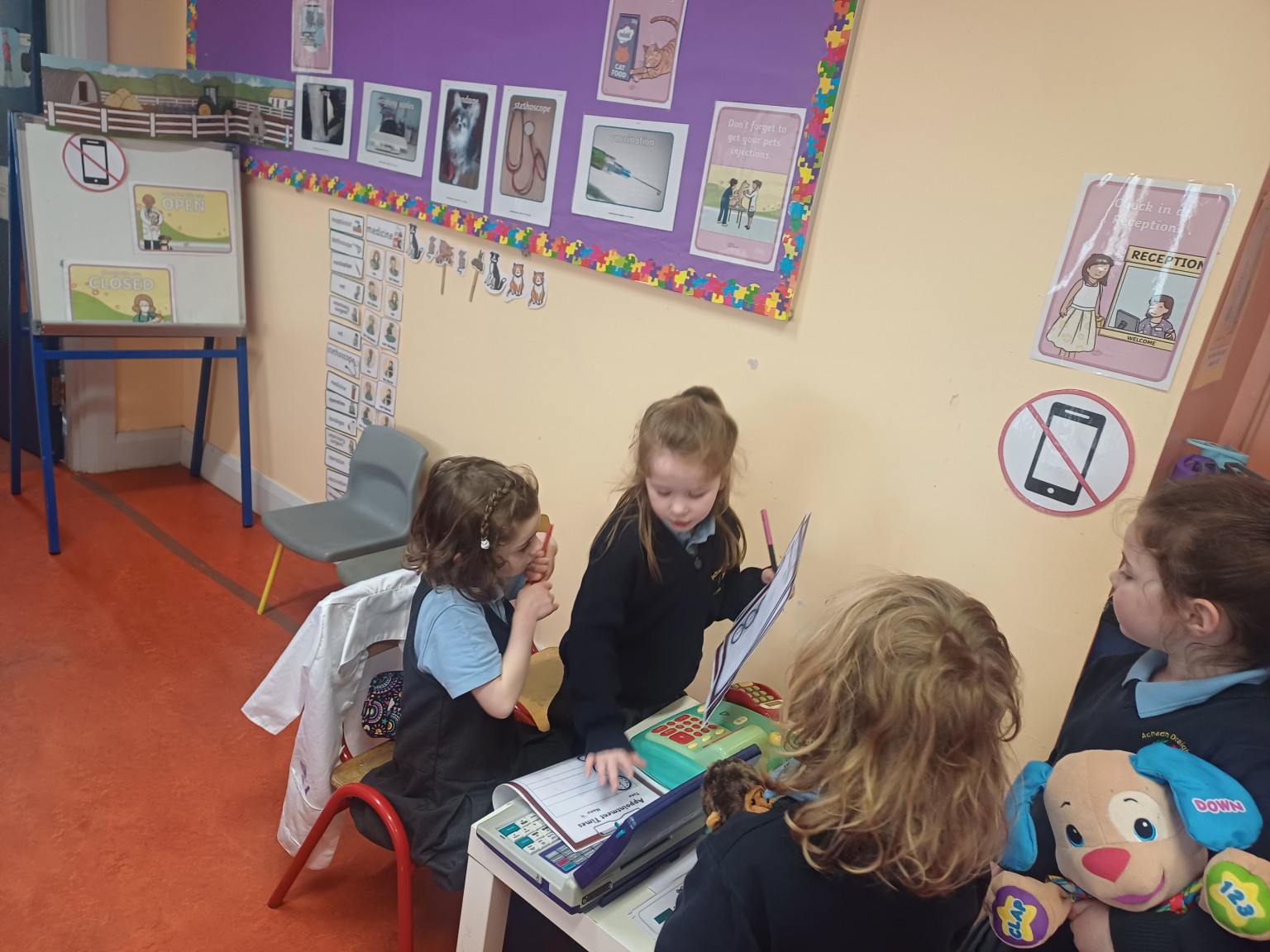 This month we have set up The Vets Surgery as part of our role play. The children have been enjoying making appointments for their animals and coming to visit the vet. Their animals have enjoyed their trip to the Aughadreena Vet Clinic and will be back again soon for a check up appointment.